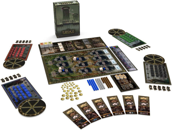 Over five rounds, the players must fulfill power requirements represented by a common competitive power track and meet specific requests of personal contracts. At the same time, by placing a limited number of engineers, they attempt to enhance their machinery to acquire new and more efficient construction actions and to build and activate special unique-effect buildings to forward their own developing strategy.