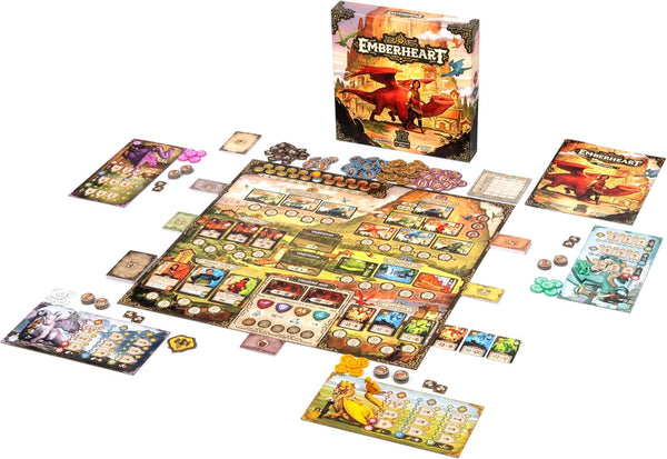 Emberheart is a quick-playing, medium-weight worker placement game . As one of the King’s Champions, your task is to recruit heroes, rescue dragons and expand their preserves, train your own dragon companion, and oppose the roaming poachers.