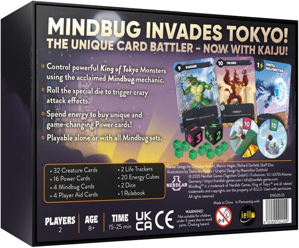 In this limited edition set, you’ll take control of iconic King of Tokyo monsters using the acclaimed Mindbug mechanic. Roll the special die to unleash wild attack effects and spend energy to acquire unique, game-changing power cards that can easily turn the tide of battle.