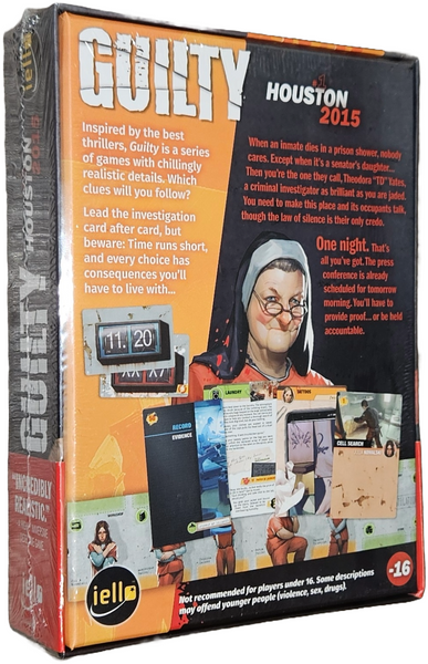 To start Guilty: Houston 2015, you'll read the introduction, then place the specified cards on the table. Choose a card, then turn it over and read it. What will you find there? Time will keep passing, possibly leading to surprises before you face the journalist pack at game's end to answer their questions as best as you can.